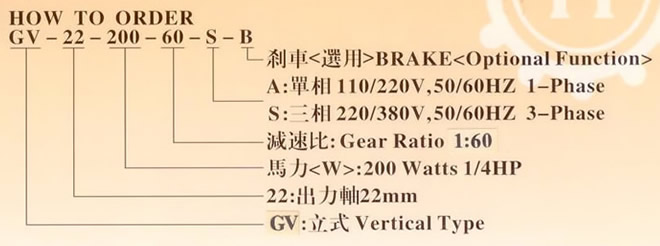 GV立式型號表示及尺寸表 - G全封閉齒輪減速電機