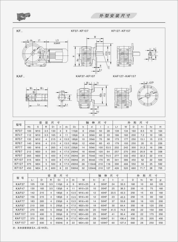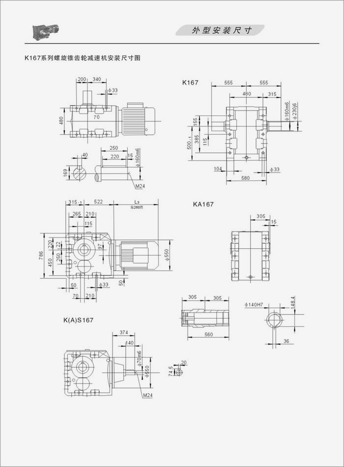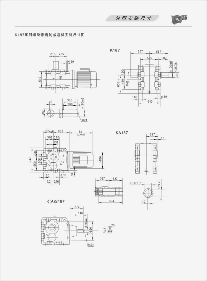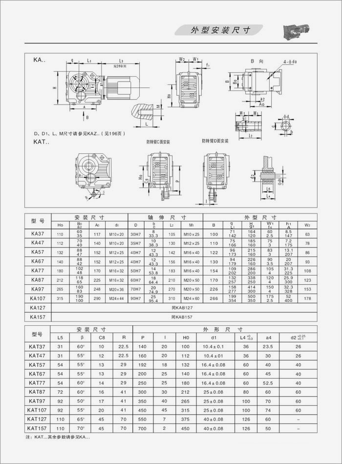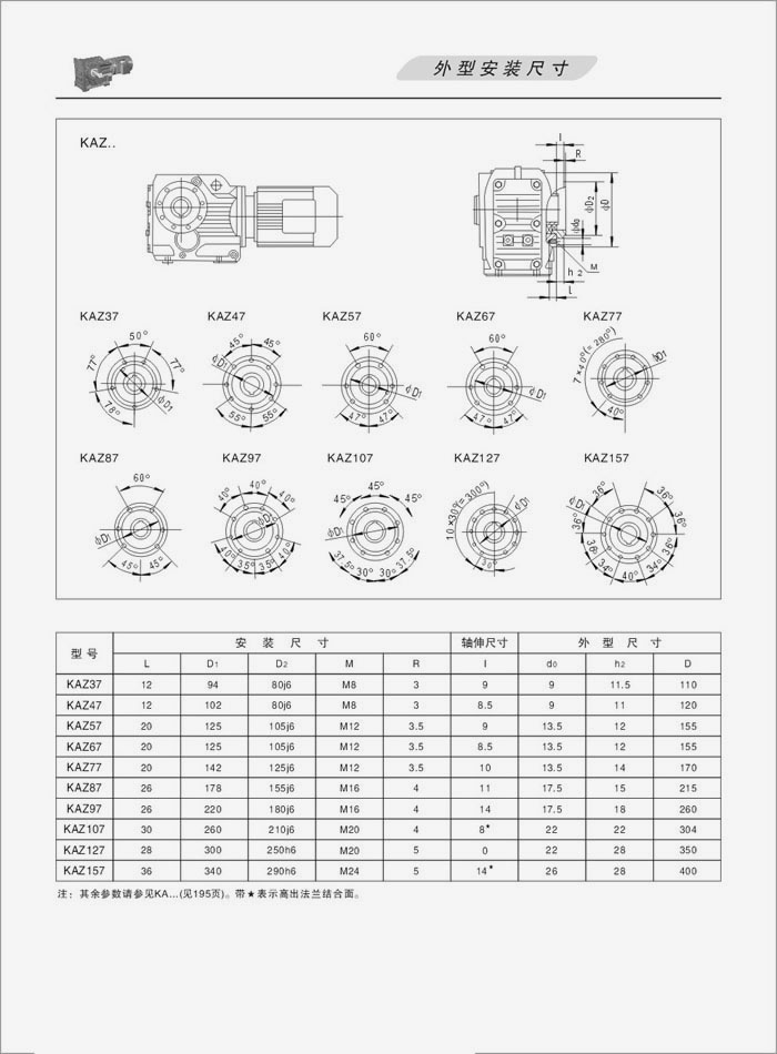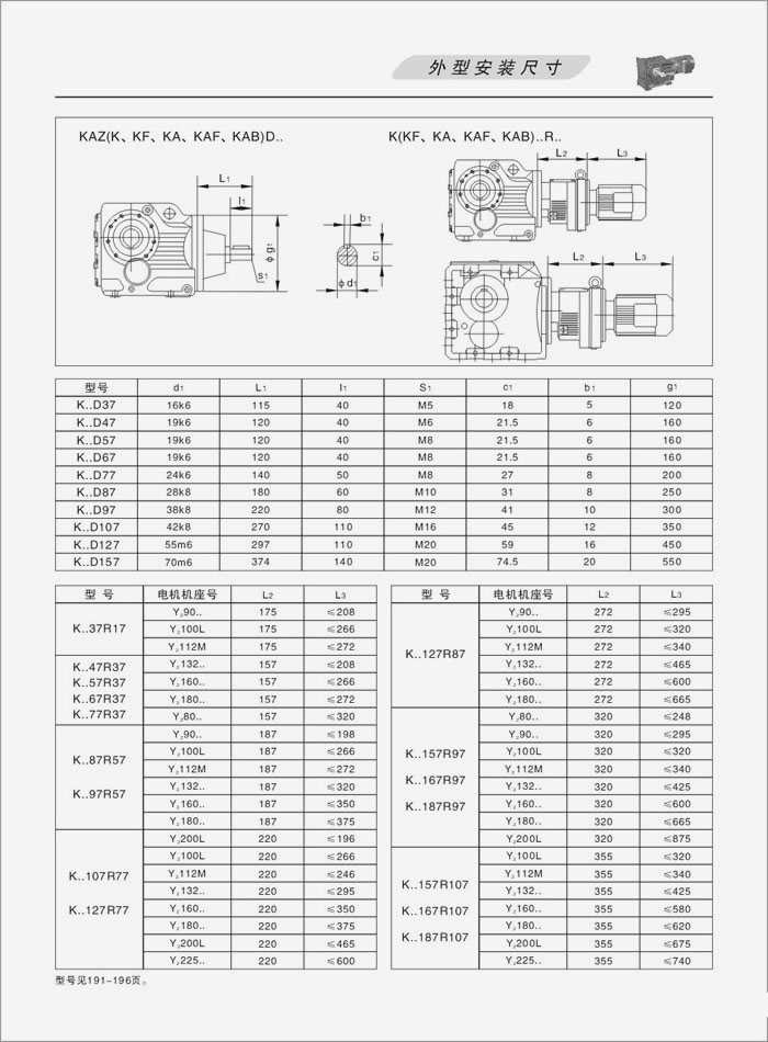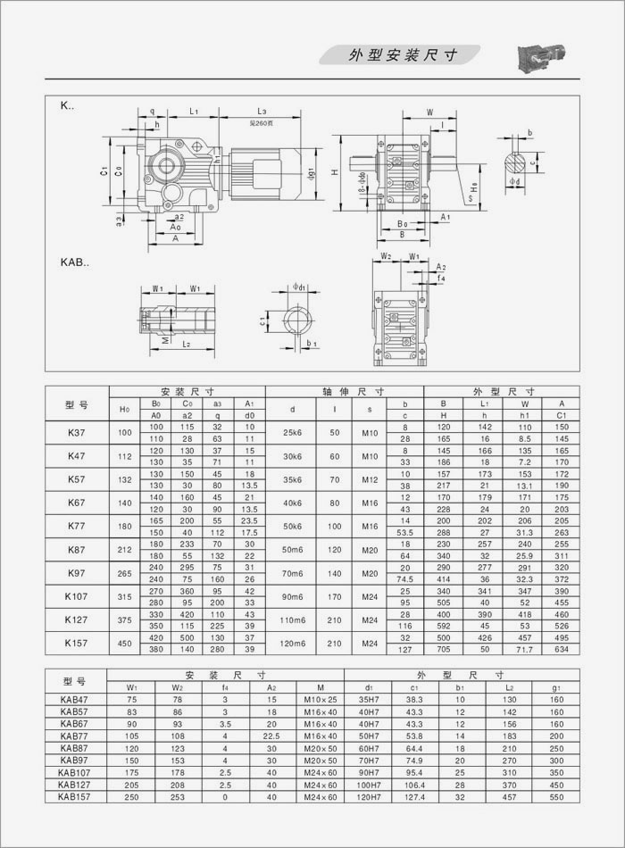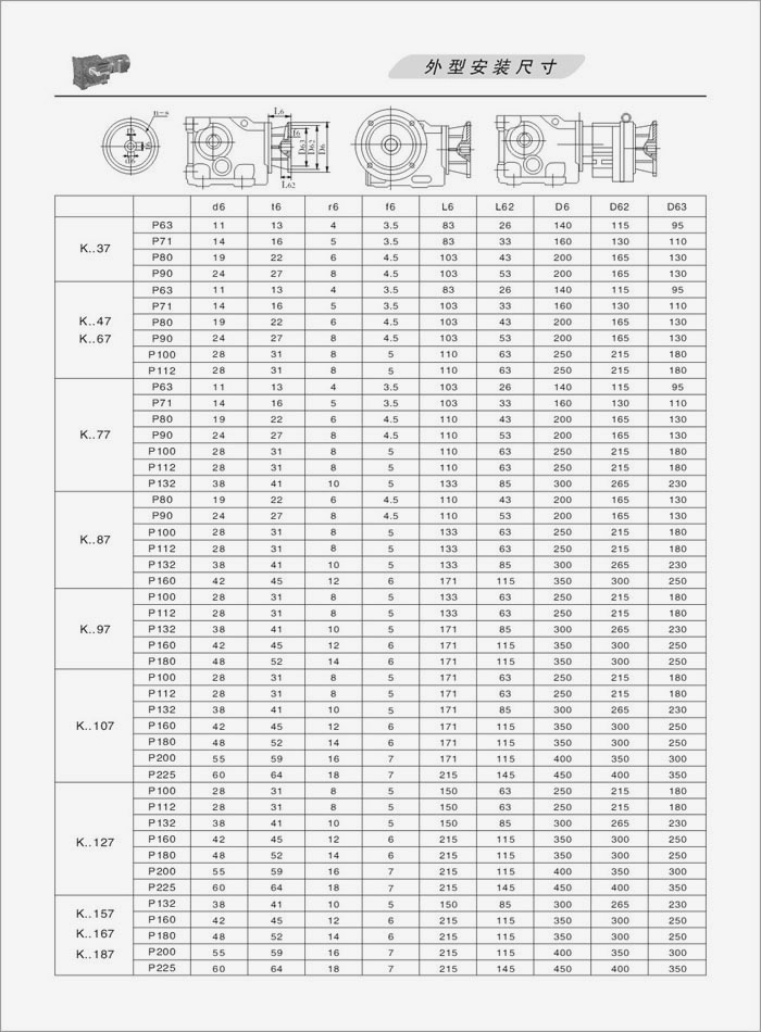 K系列螺旋錐齒輪減速機外型安裝尺寸