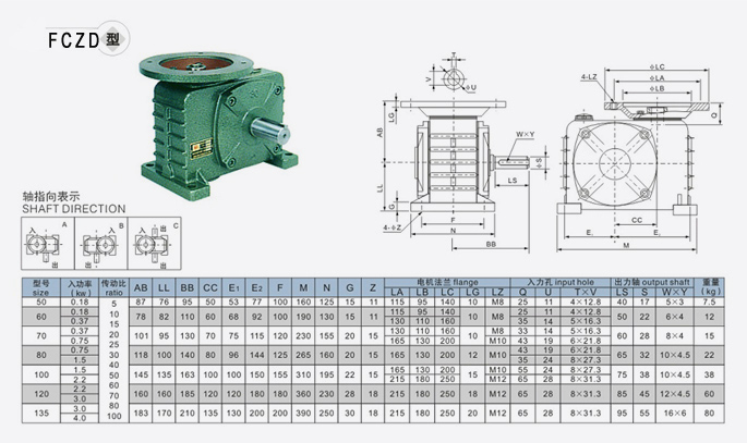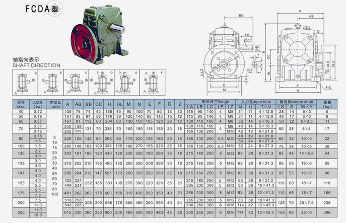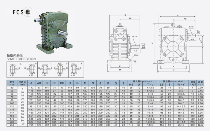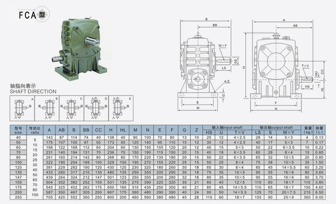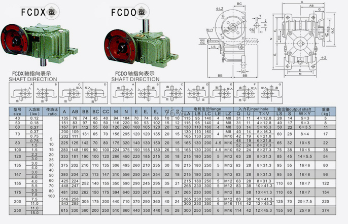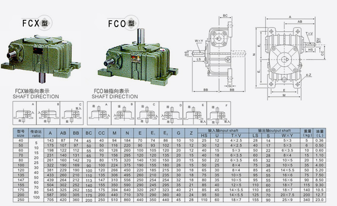 FC單級(jí)減速機(jī)型號(hào)參數(shù)