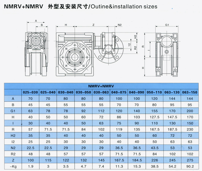NMRV/NMRV雙級(jí)減速機(jī)組合外形及安裝尺寸