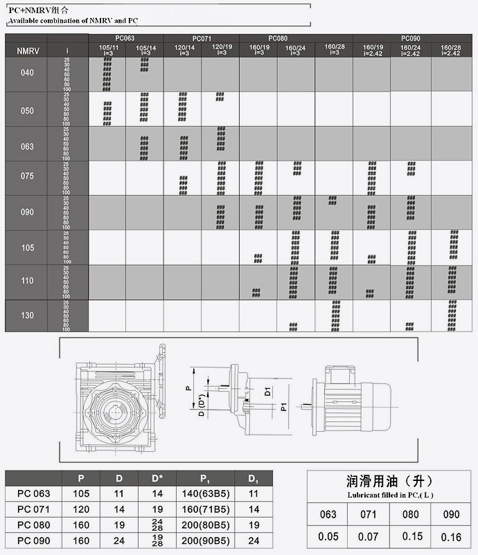 NMRV+PC組合參數表