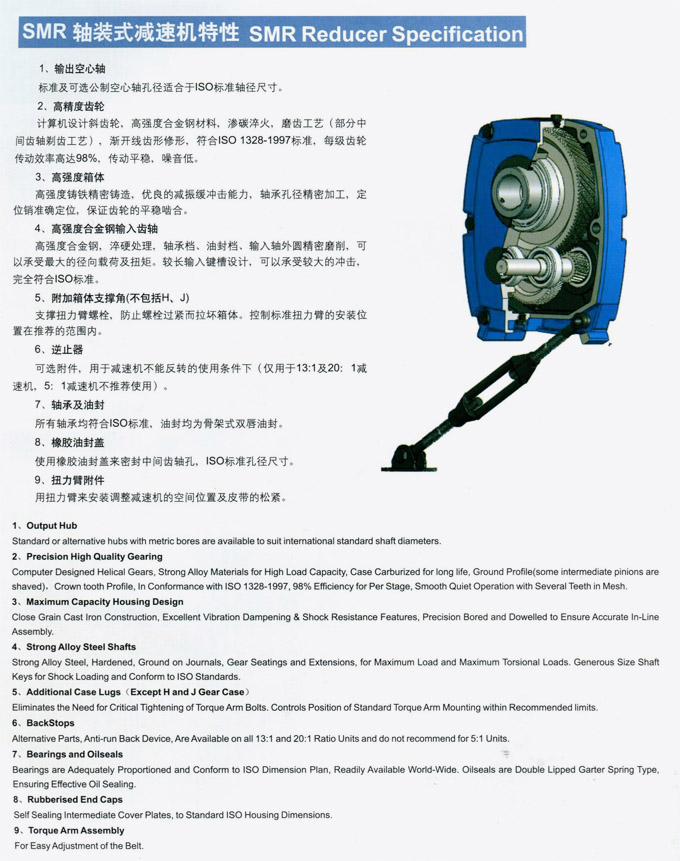 SMR公制軸裝式斜齒輪減速機(jī)特性