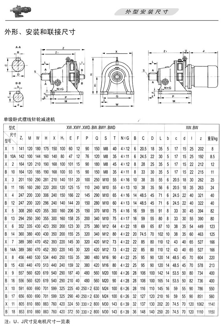 X/B擺線針輪減速機(jī)單級臥式減速機(jī)外形安裝尺寸